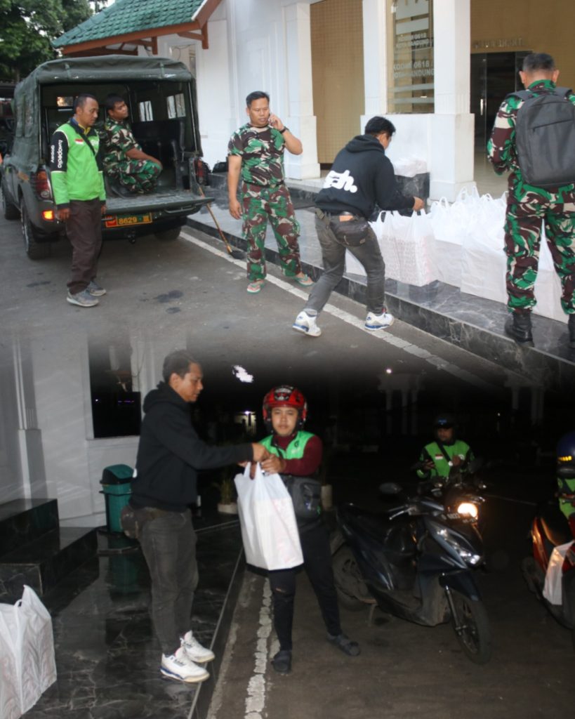 Kodim 0618/KB Bersama Komunitas Ojol Berikan dan Bagi bagi Nasi Kotak Kepada Warga Masyarakat Tamansari