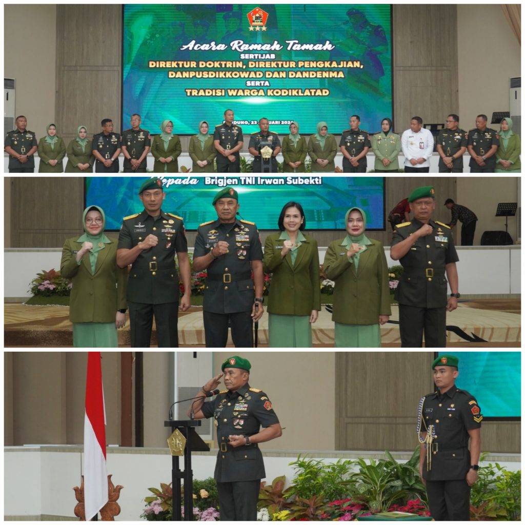 Bandung, Suarakitanews.co.id – Komandan Kodiklatad Letjen TNI Mohamad Hasan memimpin Upacara Serah Terima Jabatan (Sertijab) Dirdok, Dirjian, Danpusdikkowad serta Dandenma Kodiklatad yang dirangkaikan dengan tradisi warga Kodiklatad, bertempat di Aula M. Toha Kodiklatad, Jumat (20/1/2026).