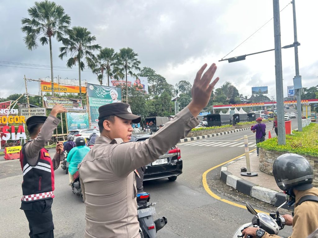 Pospam Terpadu Gadog Laksanakan Pengaturan Arus Lalu Lintas dalam Operasi Lilin Lodaya 2025
