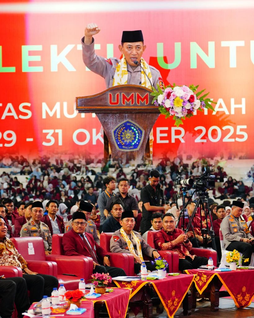 Jatim, Suarakitanews.co.id – Kapolri Jenderal Listyo Sigit Prabowo memberikan sambutan sekaligus menutup acara Tanwir ke-XXXIII IMM di UMM Dome, Malang, Jawa Timur (Jatim), Jumat, 31 Oktober 2025. Dalam kesempatan ini, Sigit mengajak seluruh peserta untuk berkontribusi dalam rangka mendukung program Pemerintah Indonesia.